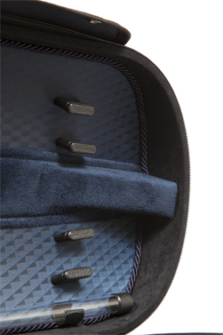 Nella parte del fondo dove alloggia il violino ed esternamente, la custodia rimane identica al modello Zero86, mentre cambia sostanzialmente il design del coperchio interno.