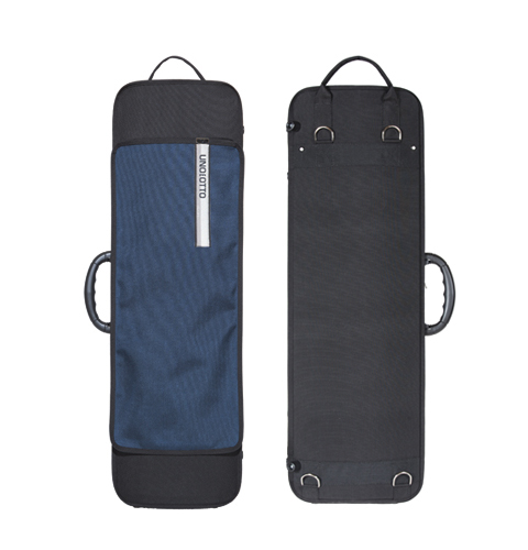 Forma rettangolare, fodera esterna (senza tasca musica) impermeabile, intercambiabile ed antistrappo con ganci per tracolle a zaino, maniglia centrale e maniglia "metro" in tessuto con relativi piedini sul lato opposto.