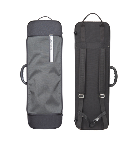 Forma rettangolare, fodera esterna impermeabile, intercambiabile ed antistrappo, con tasca musica, ganci per tracolle a zaino, maniglia centrale e maniglia "metro" in tessuto con relativi piedini sul lato opposto.