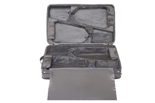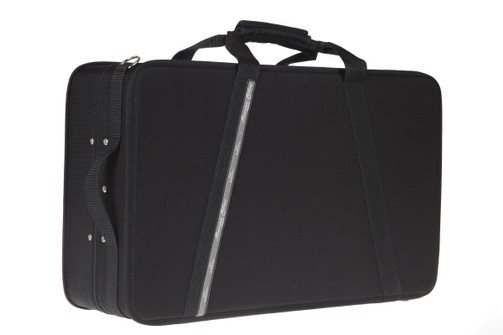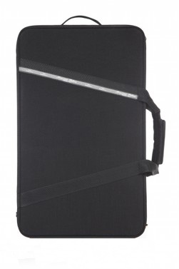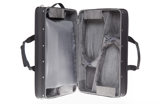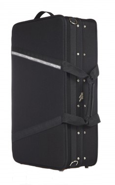 Forma rettangolare, CORTA (senza possibilità di ganci per archi all'interno), sacca esterna impermeabile ed intercambiabile, tracolla semplice con relativio attacchi, copristrumenti, maniglia centrale e maniglia "metrò" (lato corto) in tessuto con relativi piedini sul lato opposto.