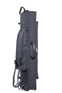 Forma rettangolare, fodera esterna impermeabile, intercambiabile ed antistrappo, con tasca musica, ganci per tracolle a zaino, maniglia centrale e maniglia "metro" in tessuto con relativi piedini sul lato opposto.