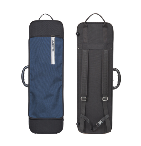 Forma rettangolare, fodera esterna (senza tasca musica) impermeabile, intercambiabile ed antistrappo con ganci per tracolle a zaino, maniglia centrale e maniglia "metro" in tessuto con relativi piedini sul lato opposto.